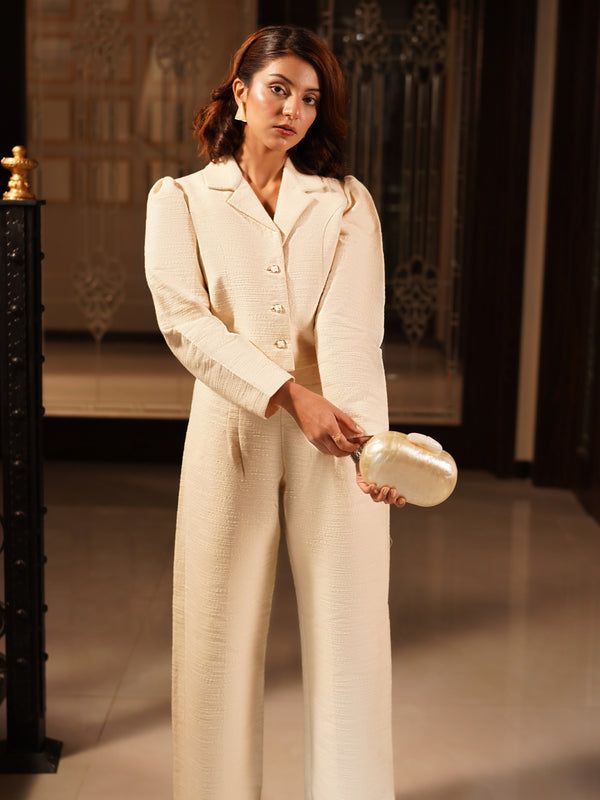 Discover refined elegance with our handcrafted suit, a beautiful blend of tradition and contemporary design. Made from premium handwoven pure cotton, this coat and trouser set offers a luxurious texture and timeless appeal. The structured coat features a minimalist silhouette with subtle detailing, complemented by wide-leg trousers for a sophisticated, flattering fit. Perfect for any occasion, this versatile outfit is a must-have for those who appreciate sustainable craftsmanship and style. Elevate your wardrobe with a piece that celebrates heritage and modernity